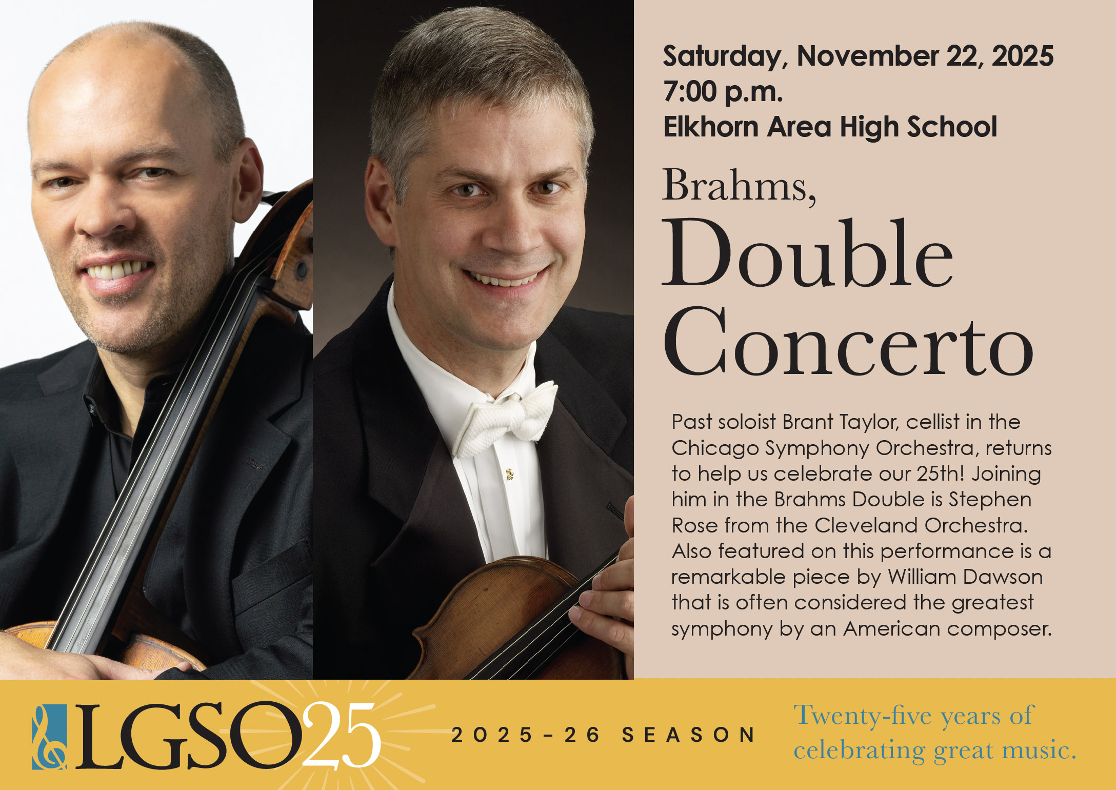 Past soloist Brant Taylor, cellist from the Chicago Symphony Orchestra, returns to help us celebrate our 25th! Joining him in the Brahms Double Concerto is Stephen Rose from the Cleveland Orchestra.